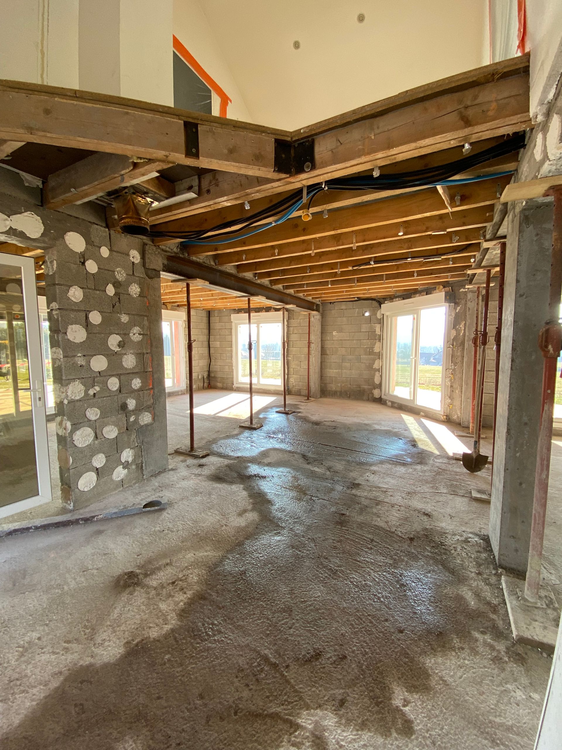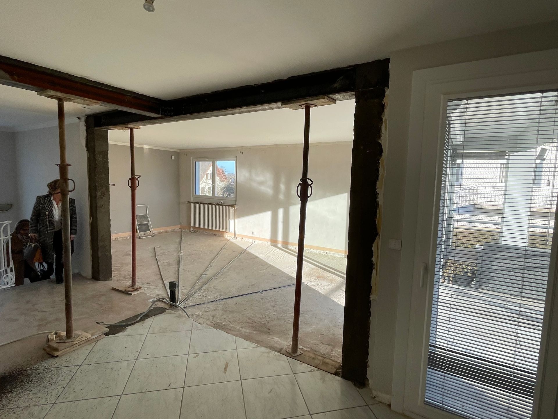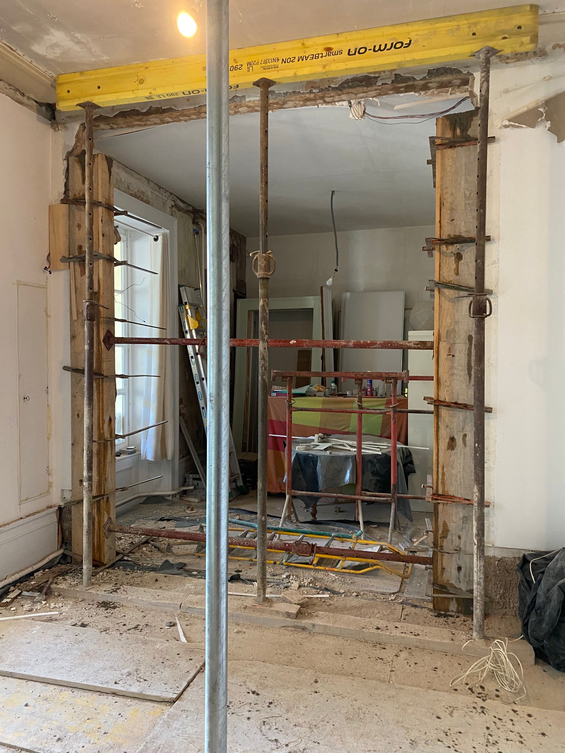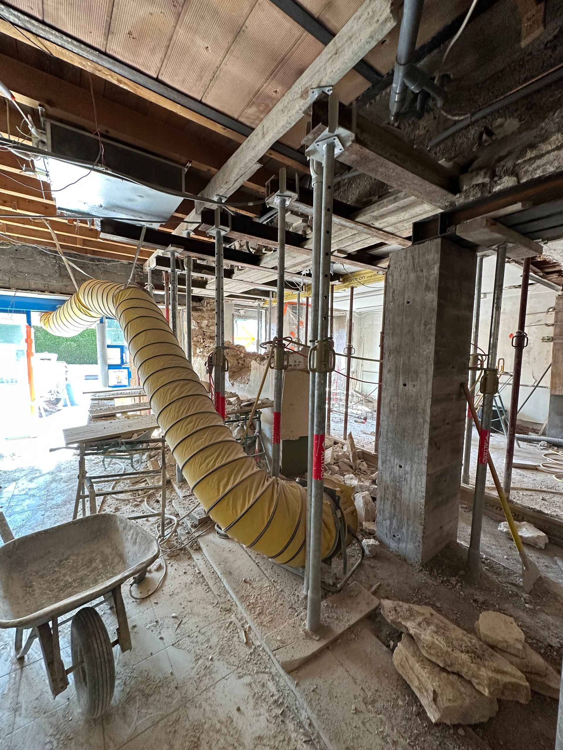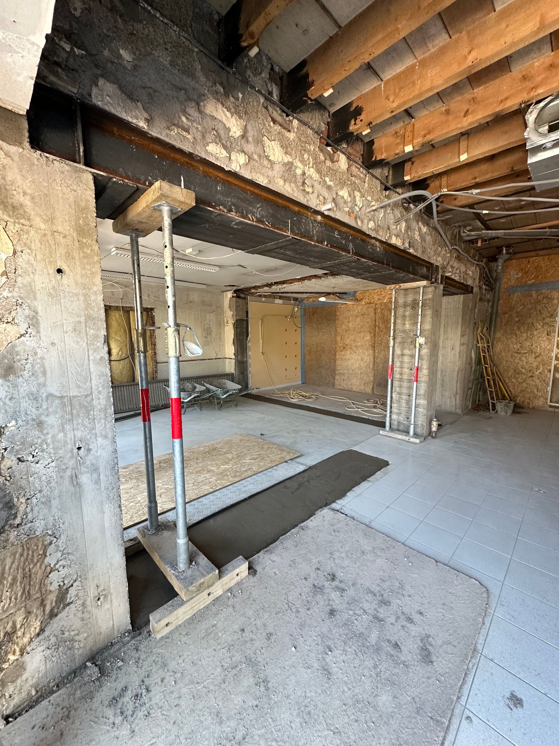Des étais supplémentaires sont ensuite posés pour renforcer davantage la structure avant toute découpe du mur.