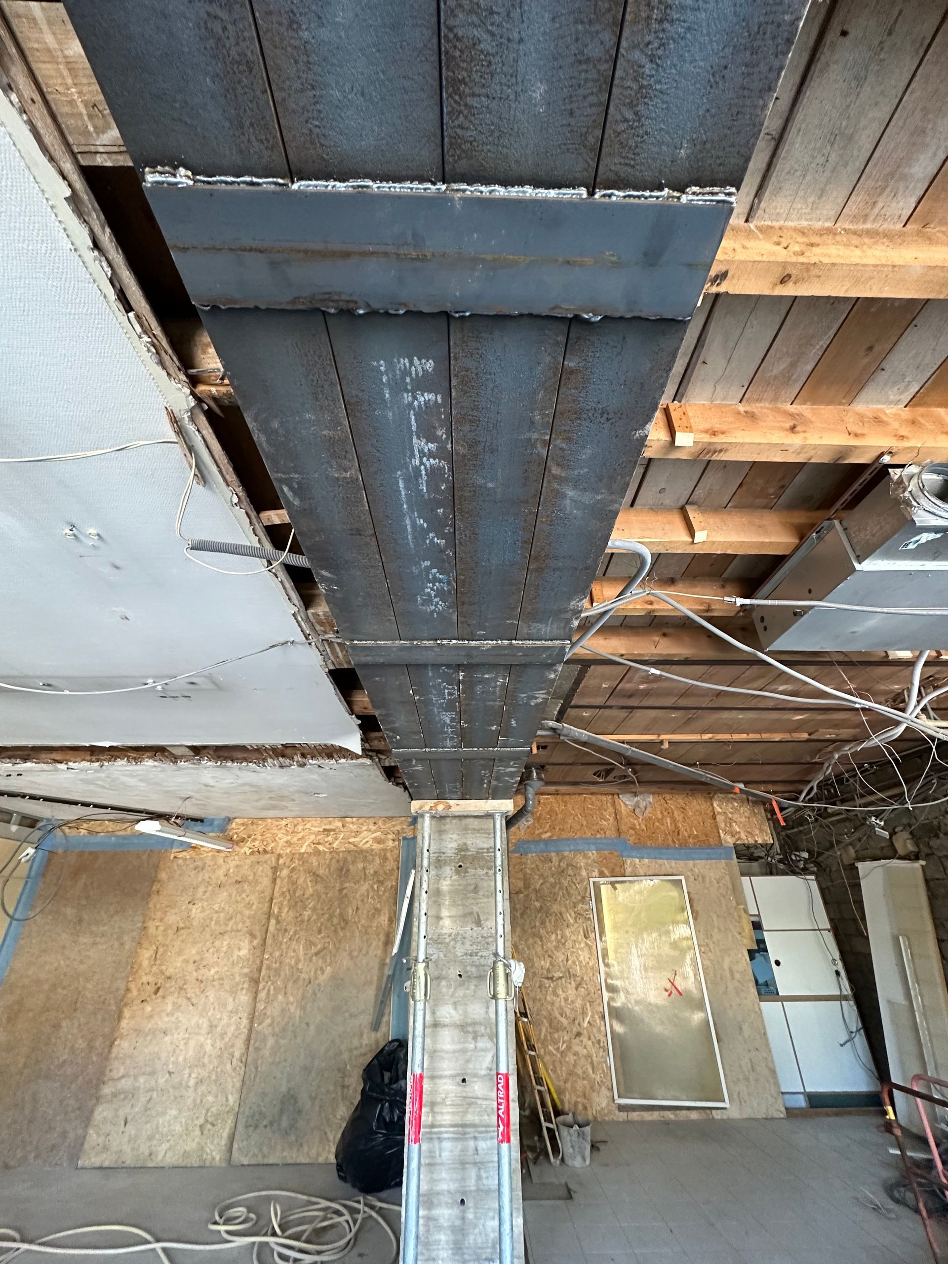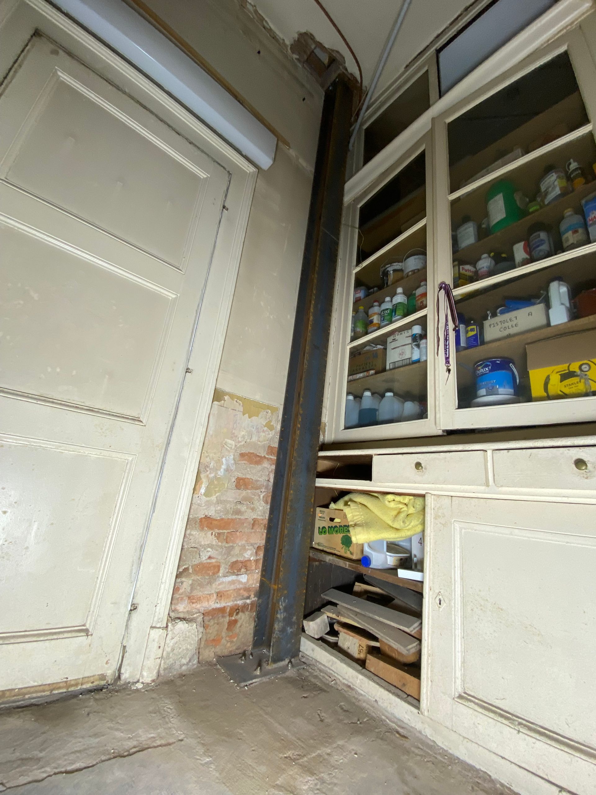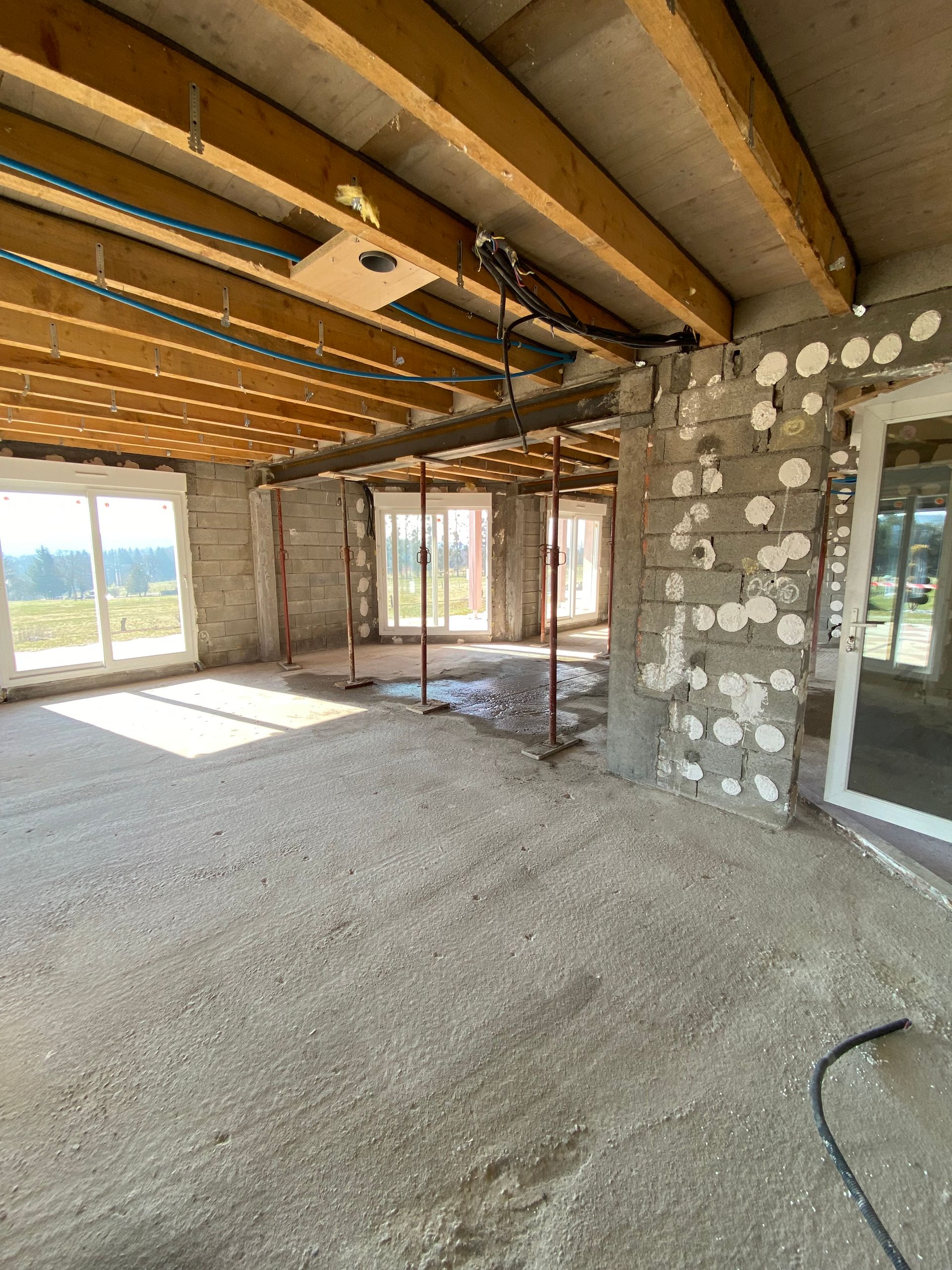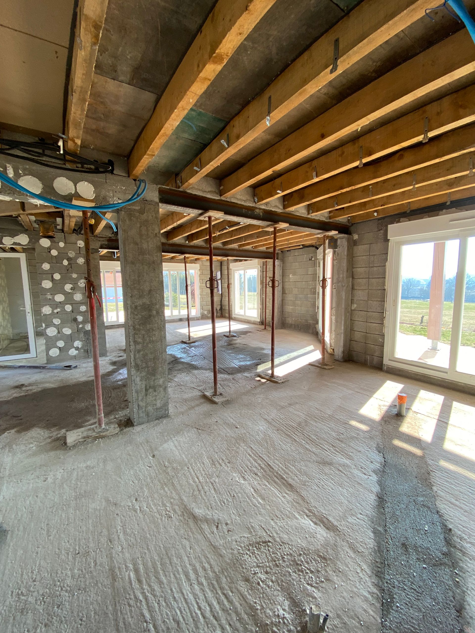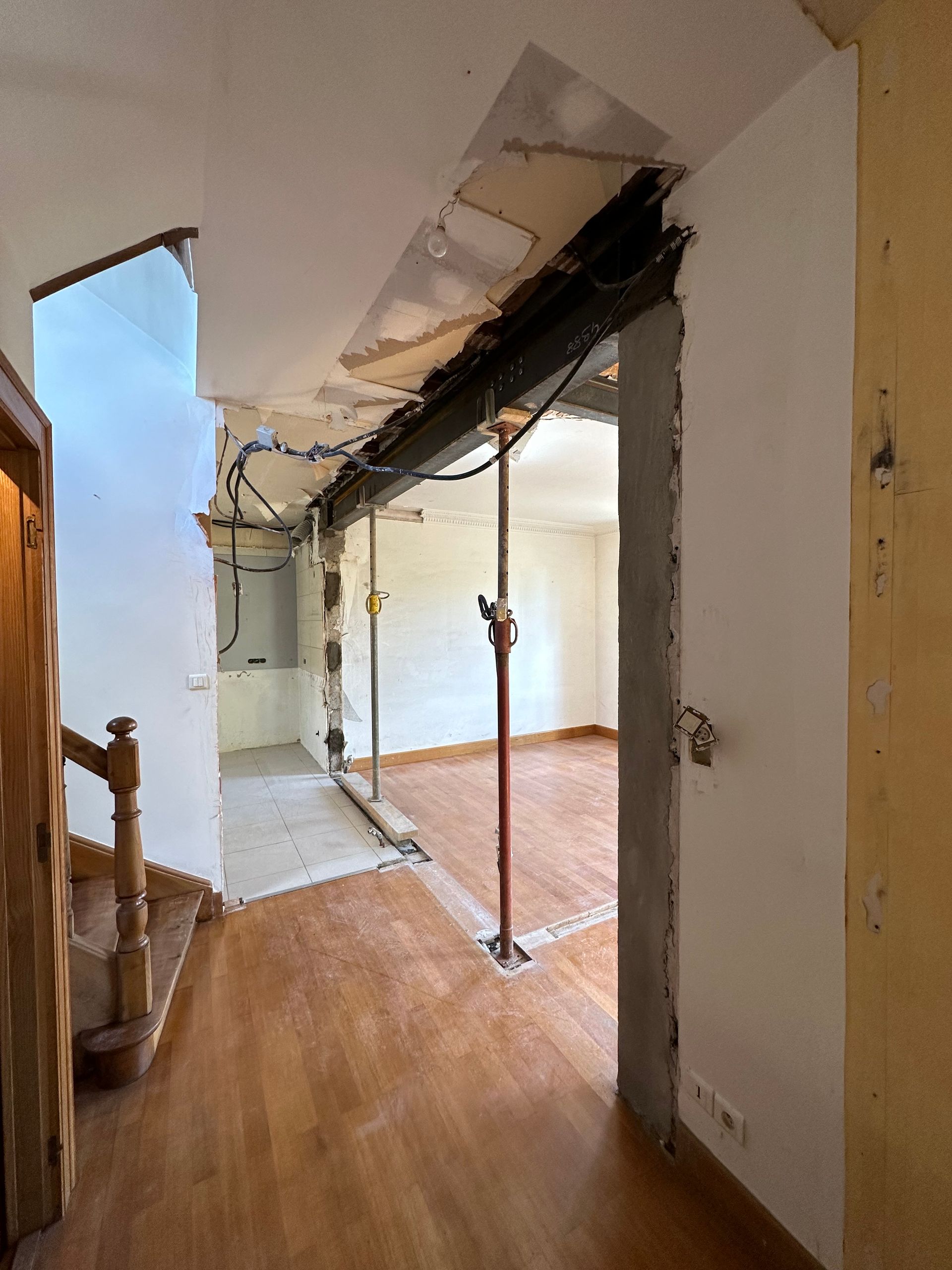 Des étais supplémentaires sont ensuite posés pour renforcer davantage la structure avant toute découpe du mur.