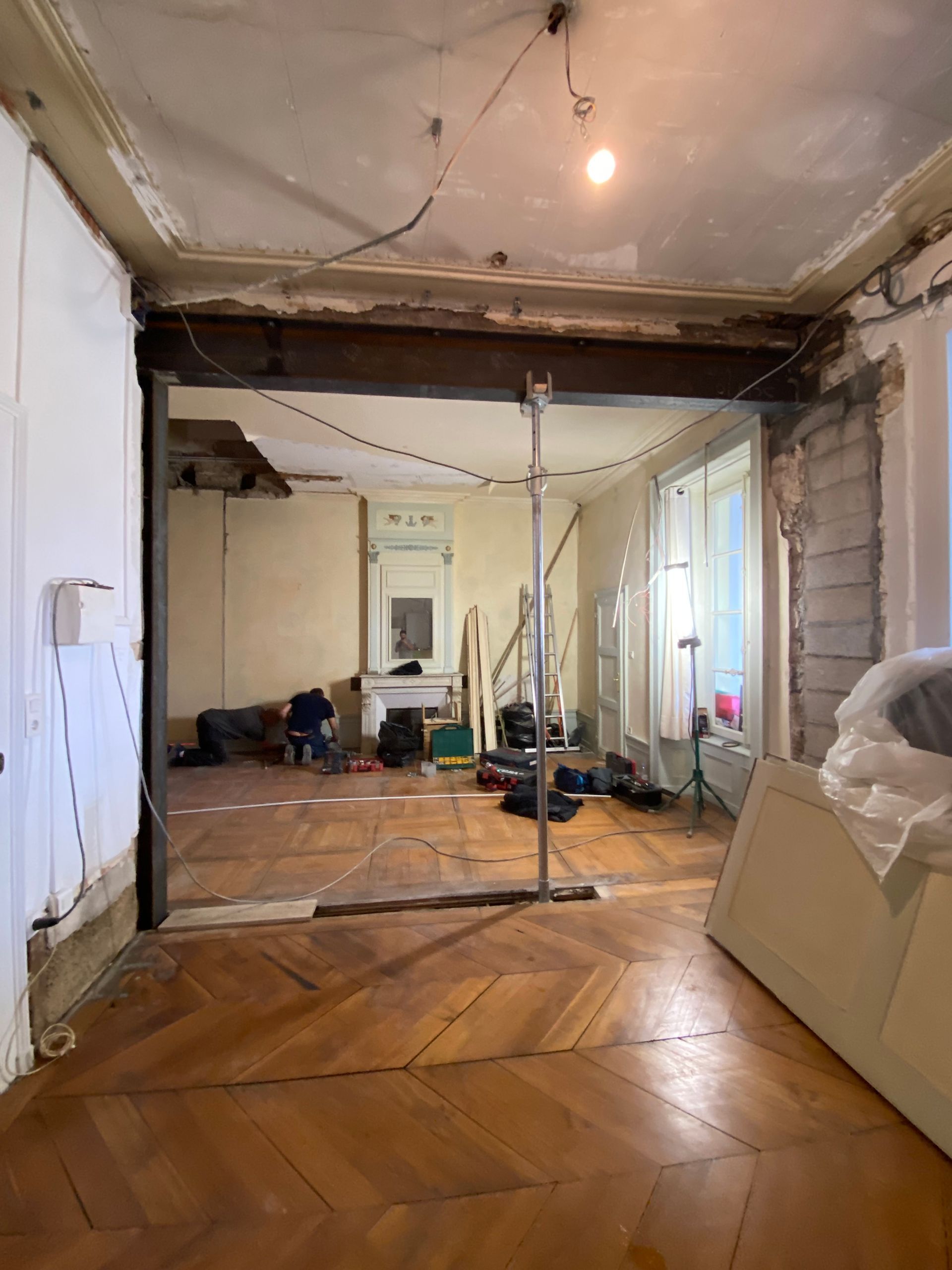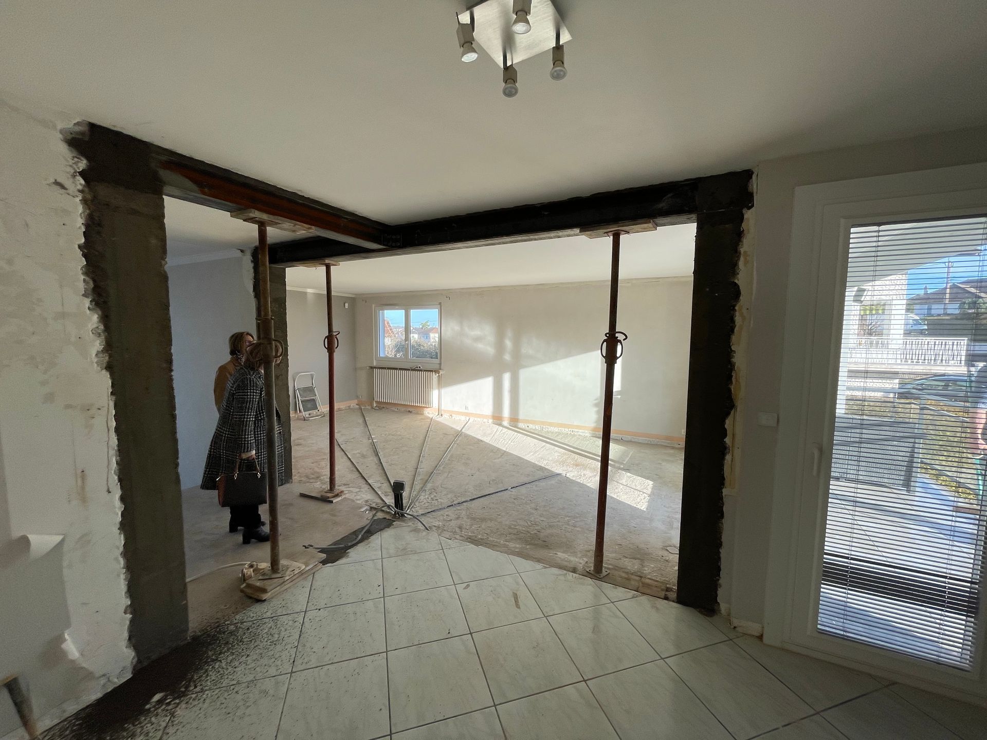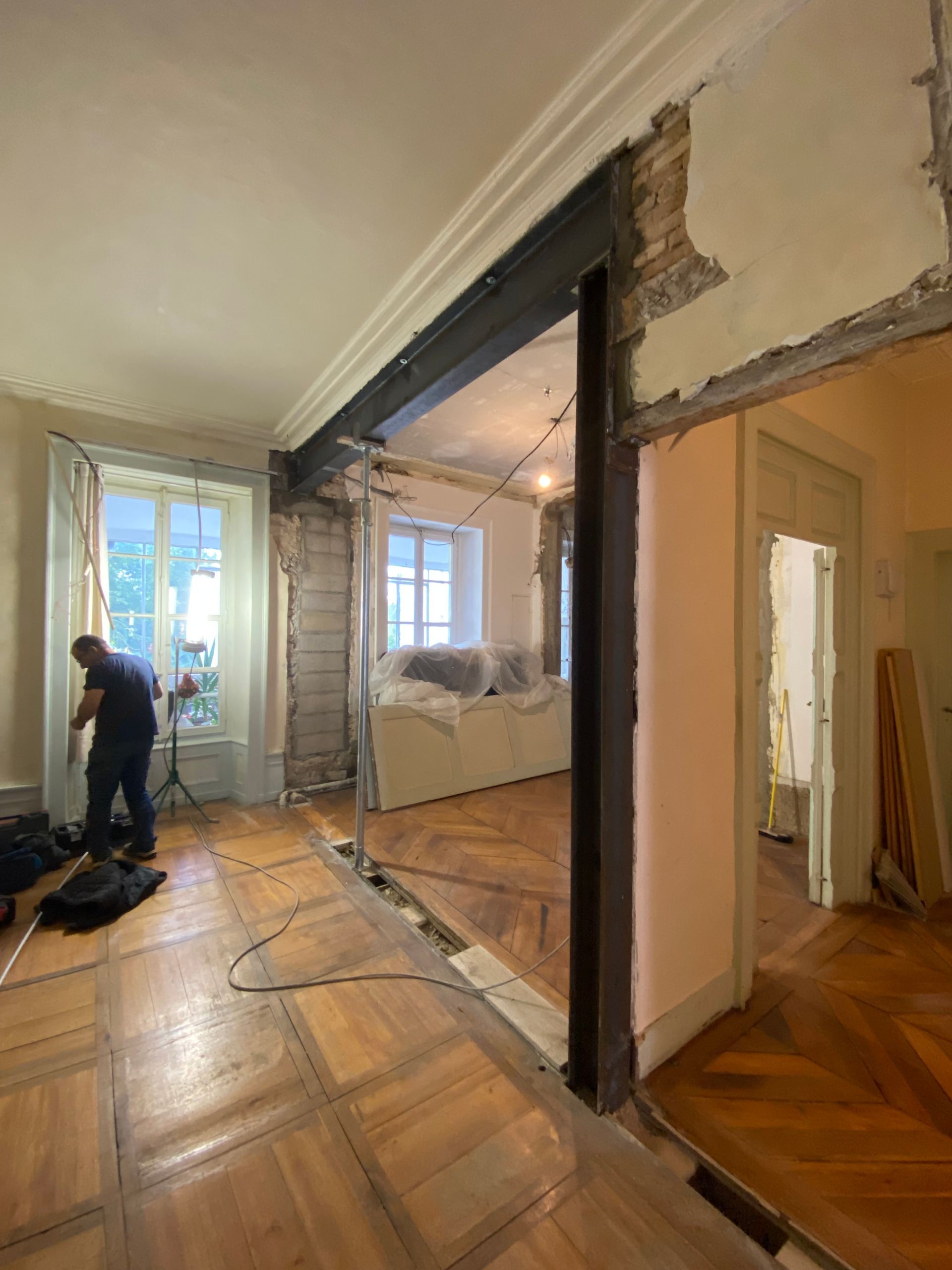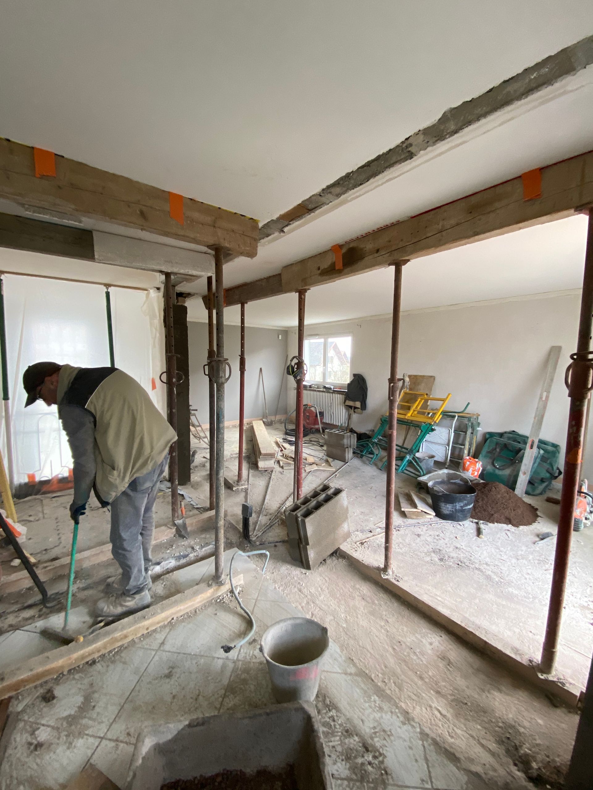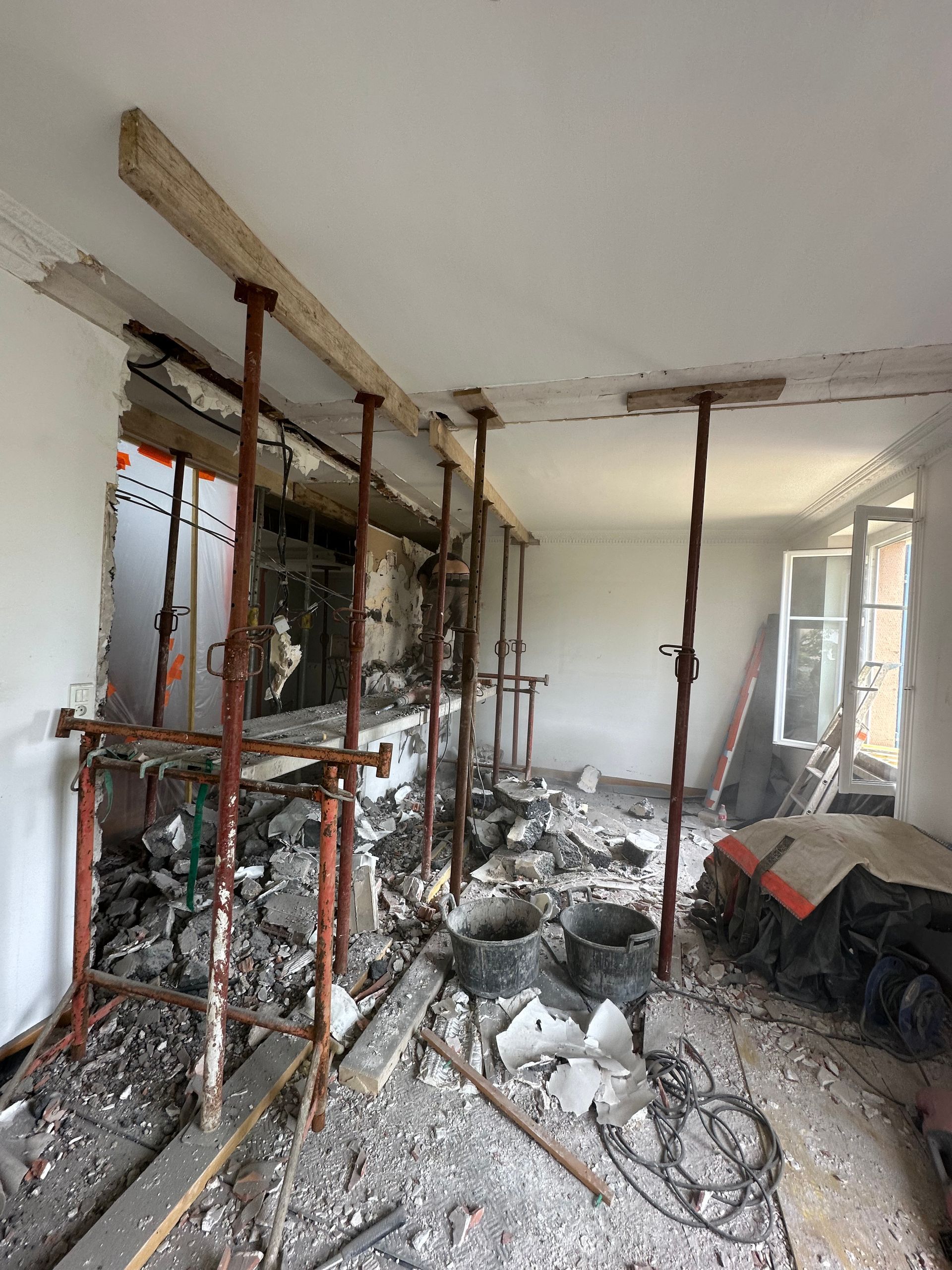 Une fois toutes les autorisations obtenues, les travaux peuvent commencer. L'entreprise s'appuie alors sur les calculs du bureau d'études pour démolir le mur porteur en toute sécurité et créer l'ouverture souhaitée.
